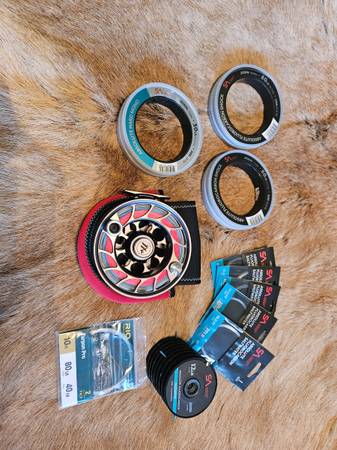 Hatch Iconic 11+ Fly Reel Color: Gray/Black Arbor Size: Large Arbor Left Hand Retrieve SA Custom Red 30# Dacron Backing SA Sonar Saltwater Intermediate Fly Line Includes all Leaders Shown Used Only...